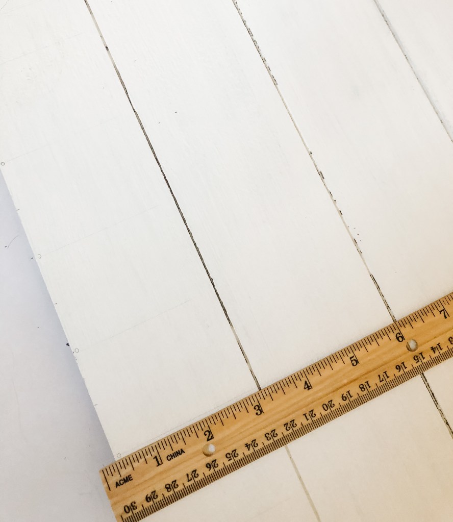 When the paint is totally dry (again wait overnight), go in with an eraser and erase any lines making sure to leave the secondary marks you paced along the sides of the board.