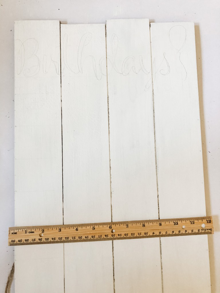 - Then with the remaining area, measure the height. Divide this by 12.5 and make a slight pencil mark at each spot starting from the bottom. Then add another mark just under half between the first pencil marks. This is where you will add the screw and eventually be the line you write the months from. Let’s call this the secondary mark!