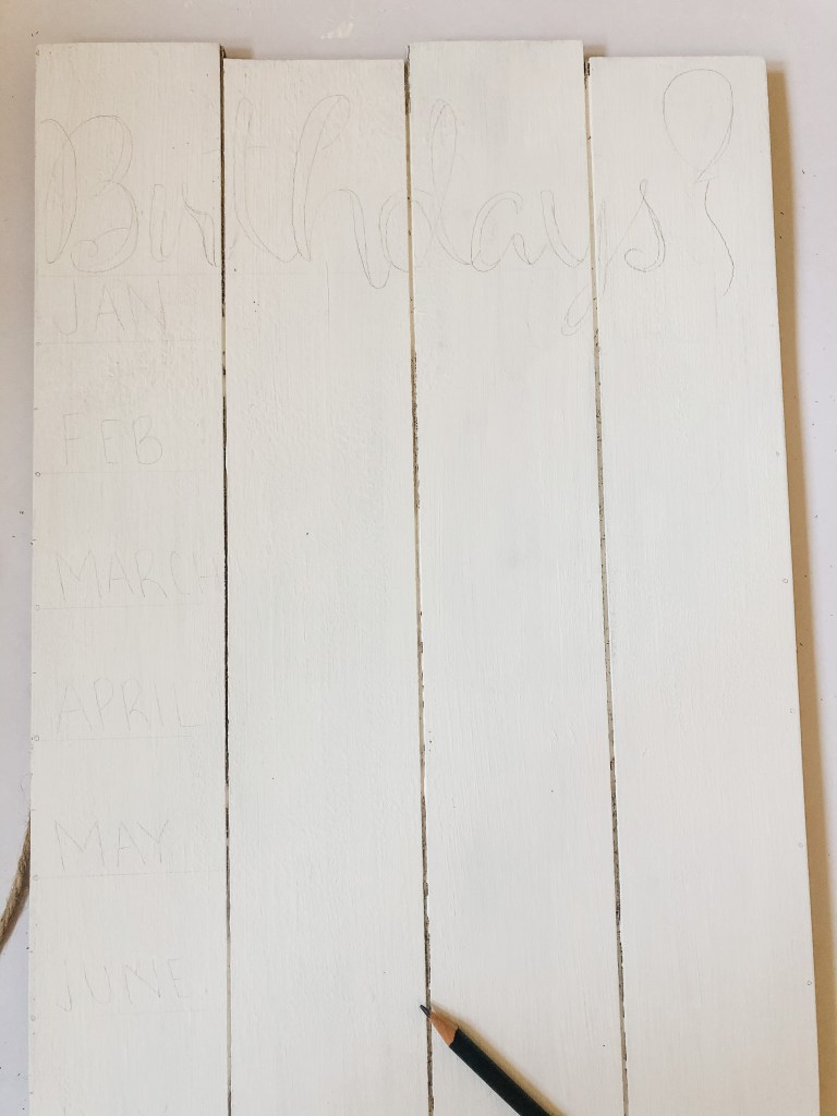 Before moving on to the next step make sure that your board is COMPLETELY DRY. In fact, I would even let it dry overnight. After dry, start to sketch out where we want everything. Using a pencil you are going to make the following marks: