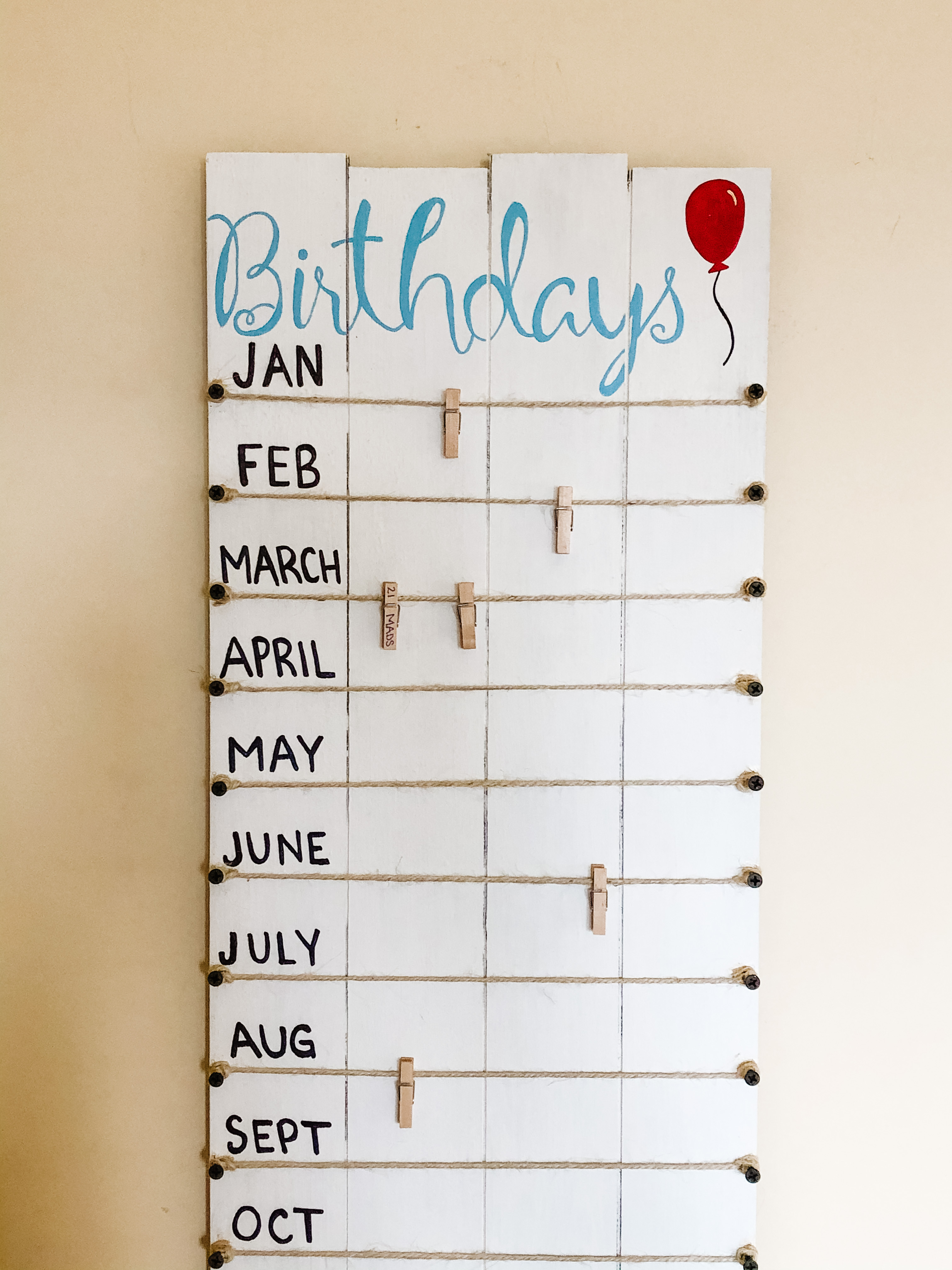 You birthday board is complete! Write the students name and the date they were born on a clothespin to hang at each month. You are ready to track and celebrate your classroom birthdays!