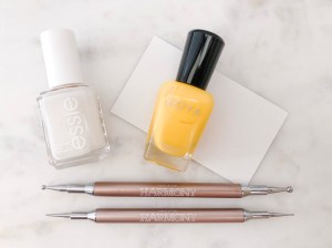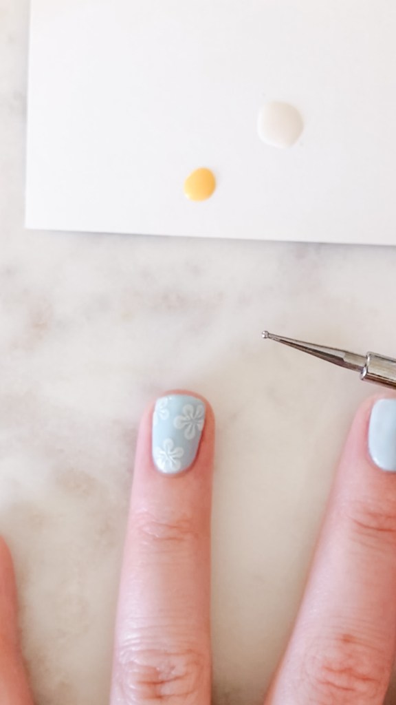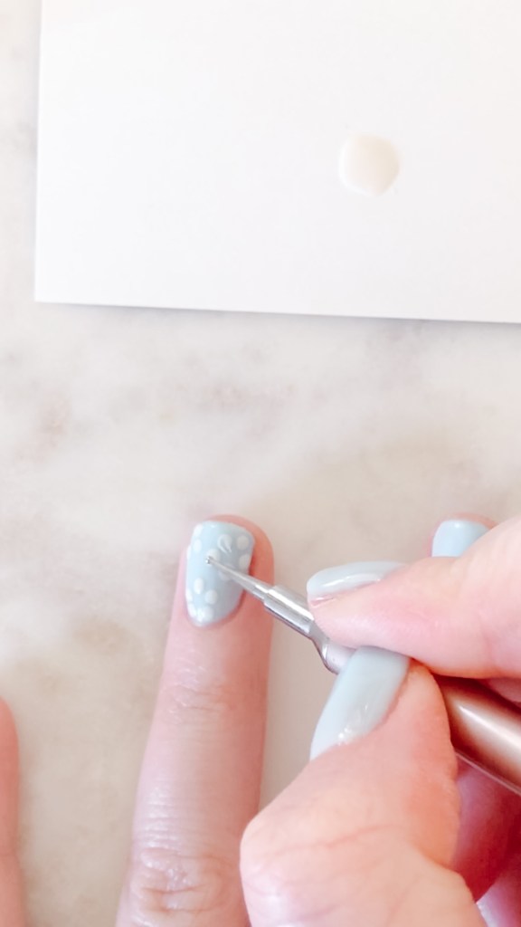 If you don’t have dotting tools laying around, which I’m sure a lot of us don’t, there are plenty of different household items you could use. Keep in mind for this nail design you will need one larger dotting end and one smaller.