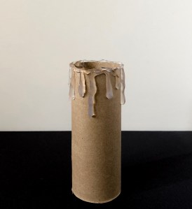 I started with hot glueing around the interior of the toilet paper roll. The line will become a ledge that the tea candle will sit on. Keep adding layers to the hot glue builds towards the centre and the tea candle doesn’t fall through. Let this dry enough so it won’t slide before moving on to the next step.